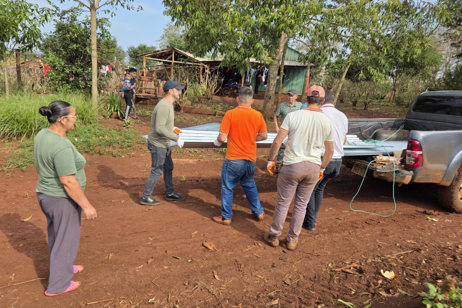 La entrega de chapas de zinc se lleva a cabo gracias a la gestión directa y la rápida respuesta del Gobernador de Itapúa, Sr. Javier Pereira, cuya colaboración ha sido fundamental para brindar auxilio oportuno a nuestra comunidad.