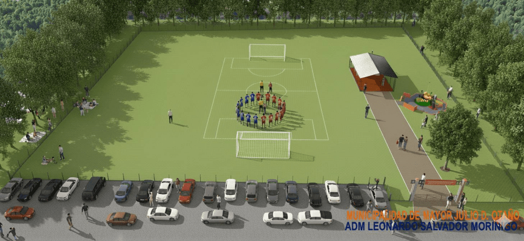 - Seguridad y estética: Iluminación completa de la cancha, cercado perimetral y pórtico principal.