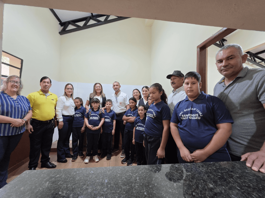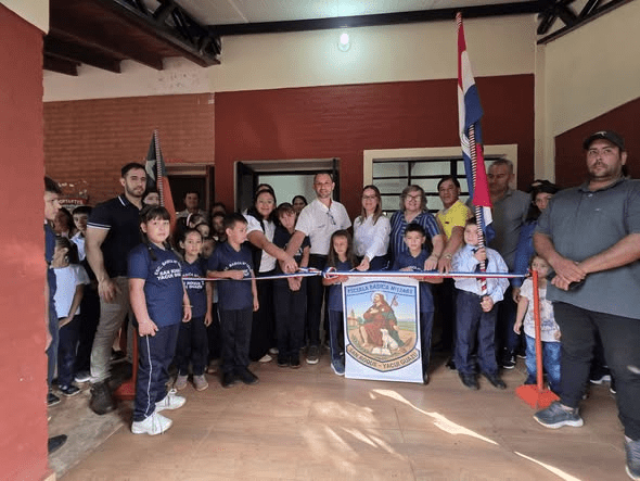 En la jornada del jueves 26 de febrero, se llevó a cabo la inauguración oficial de una nueva cocina con comedor y un sistema de tanque elevado de agua con capacidad de 2.000 litros en la Escuela San Roque, ubicada en la comunidad de Yacui Guazú.